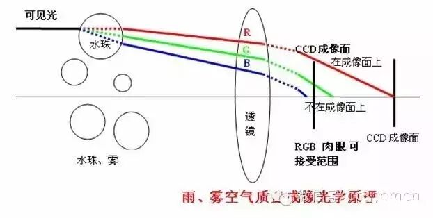 在不可见光的范围内,有一频率的光可以穿透雾气,但是由于起波长不同,所以需要在摄像机上进行处理,以达到对其聚焦的目的,同时还需要在摄像机上进行从新设计,用来将这一频率的不可见光进行成像,由于这个不可见光没有对应的可见光色彩图,所以在监视器上呈现的图像为黑白颜色。